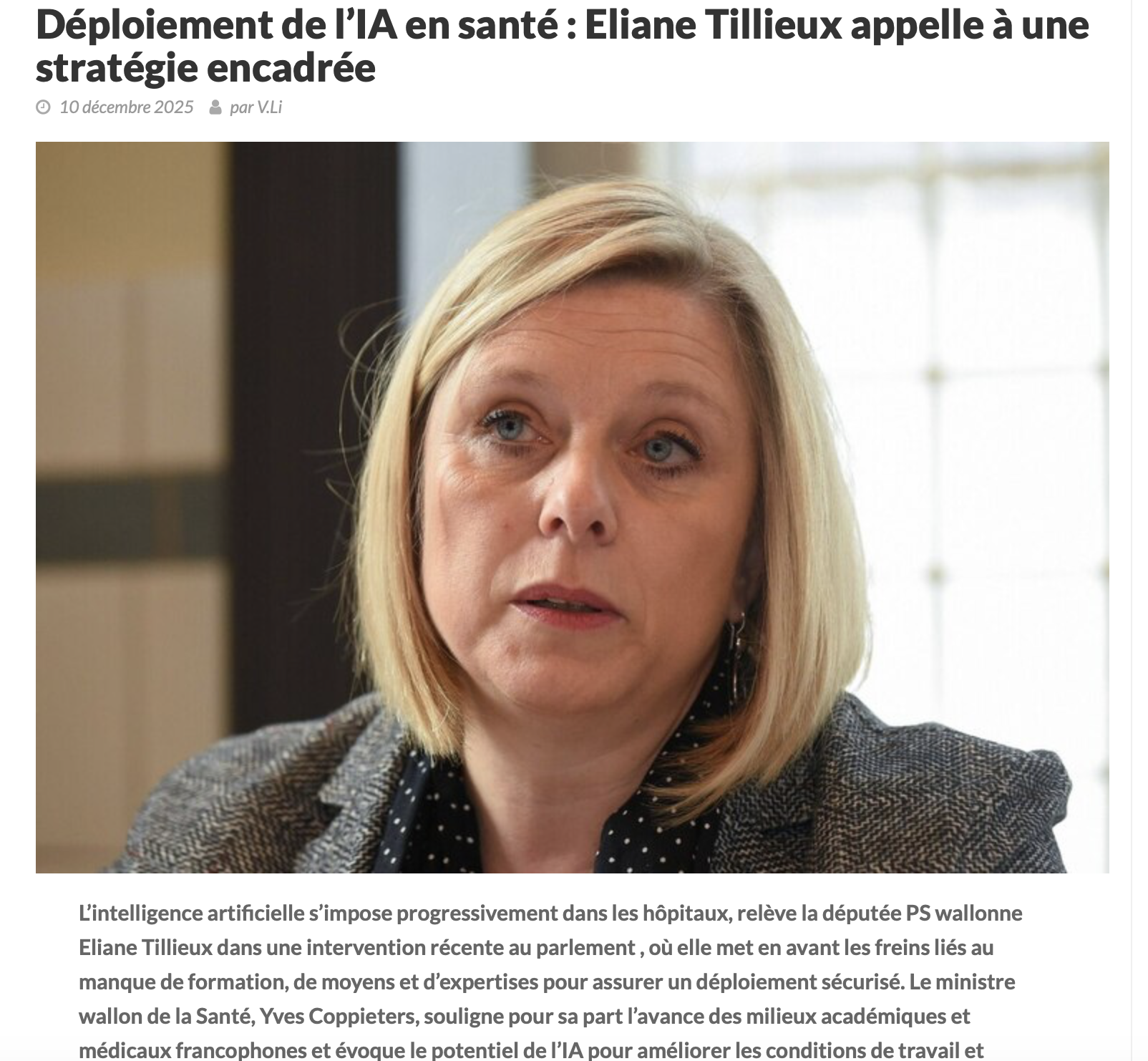 Découvrez ici l'article de Medi-Sphère concernant mon interpellation du ministre de la santé au sujet des les freins liés au manque de formation, de moyens et d’expertises pour assurer un déploiement sécurisé de l'IA dans le domaine de la santé.